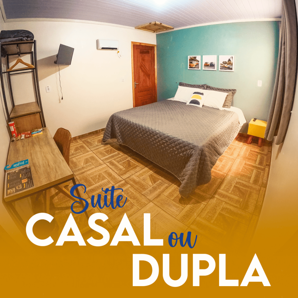 Nossas suítes foram pensadas para o máximo de conforto, acomodando perfeitamente até duas pessoas. Prepare-se para noites de descanso revigorante:
